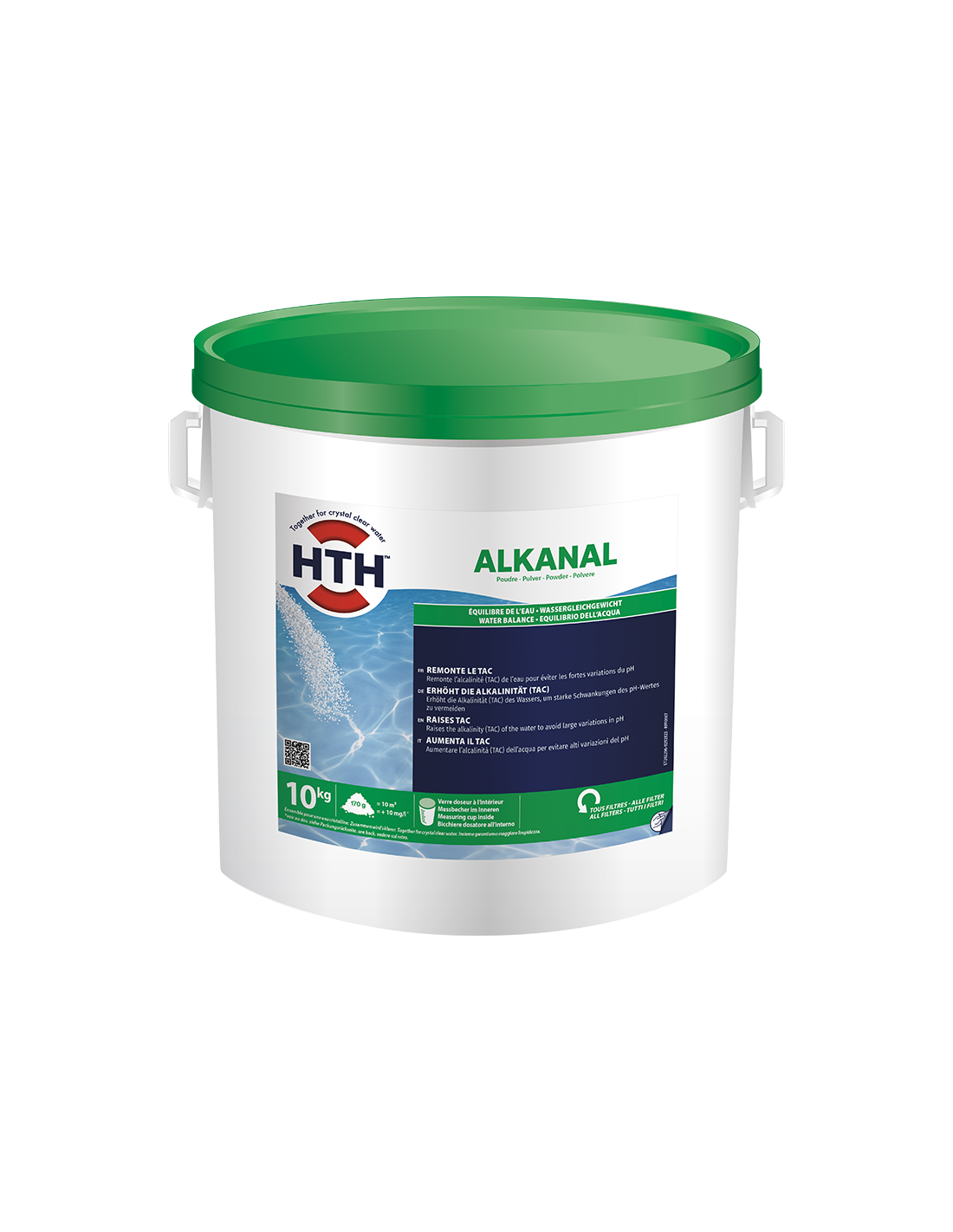 Dosage : Pour augmenter l'alcalinité (TAC) de 10 mg/l, il faut prévoir environ 170 g de produit pour 10m3 d'eau