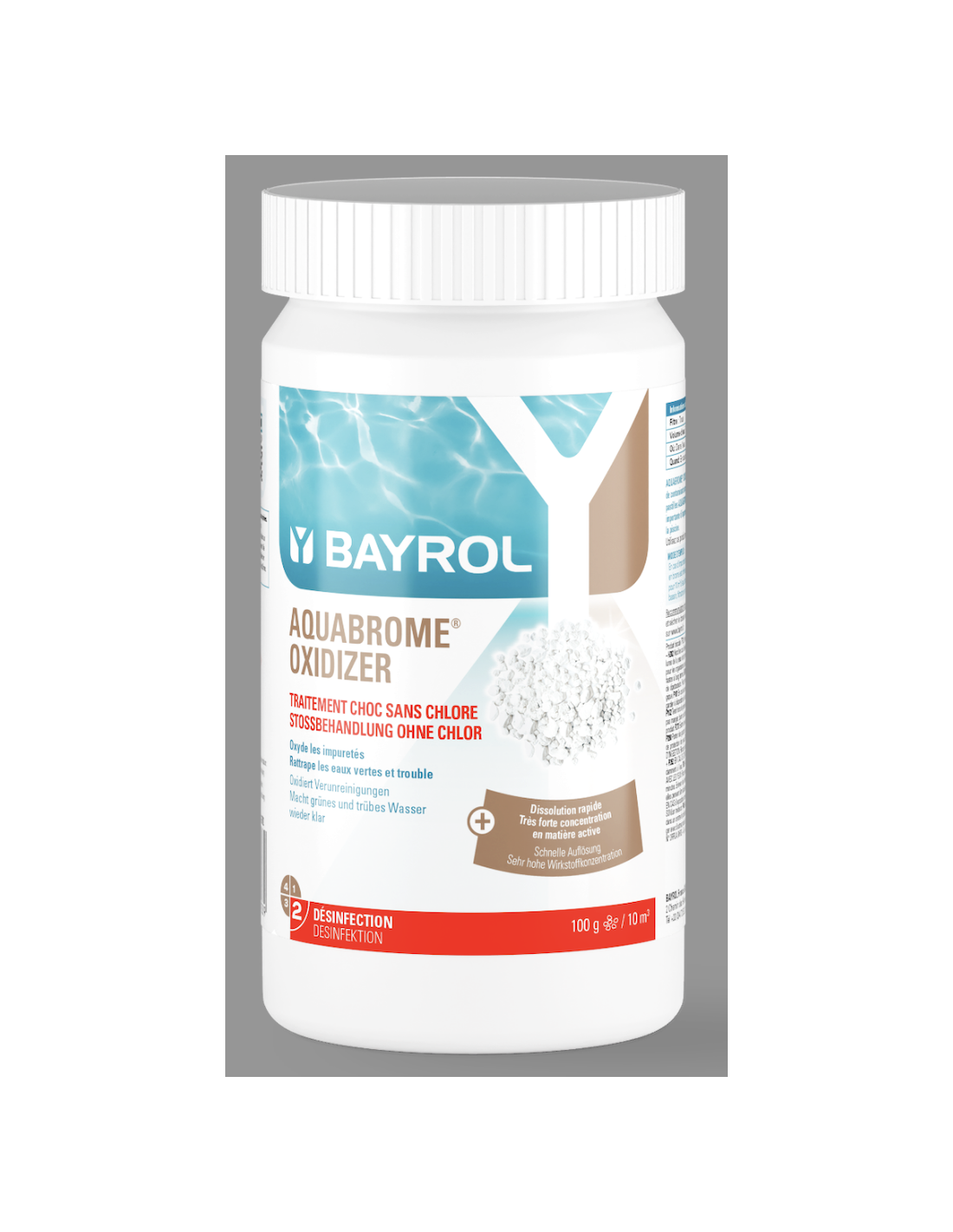 Aquabrome® Oxidizer est un traitement choc, sous forme de granulés, qui permet de rapidement répondre à un problème d'eau d'une piscine traitée au brome.