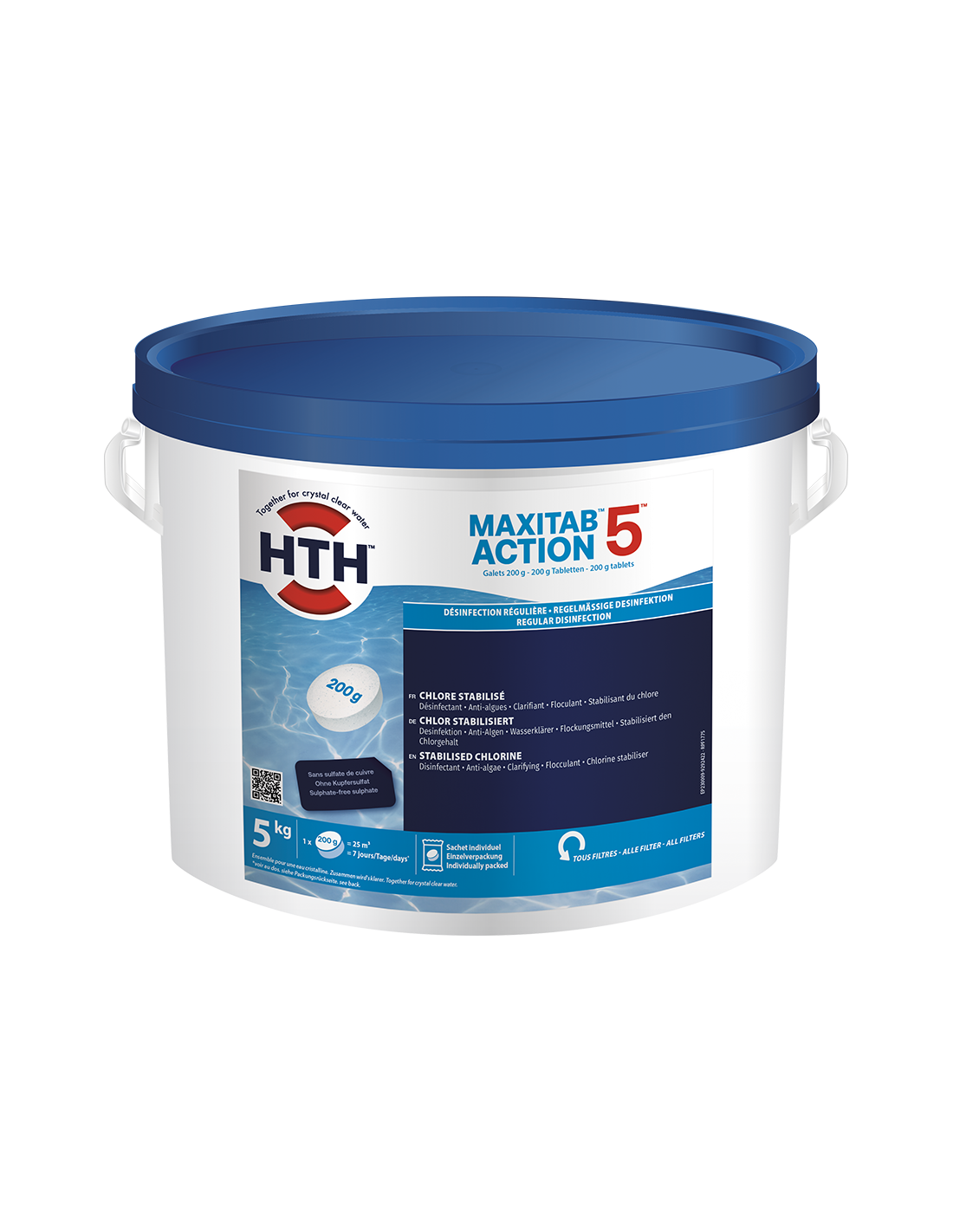 Galets 200g de chlore stabilisé. Pour tous types de piscines >20m3 Teneur en chlore disponible voisine de 86 %. Traitement complet en un seul geste : Désinfectant - Anti-algues - Anti-tartre - Floculant - Stabilisant du chlore. Evite les tâches sur les liners car il ne contient pas de sulfate de cuivre. Stabilisation élevée contre l'action destructrice des rayons ultra-violets de la lumière solaire. Pas de contact : sachet individuel