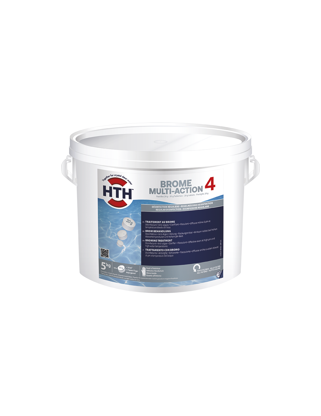 Brome en pastilles 20 g pour tous types de piscines. Traitement complet en un seul geste : désinfection, anti-algues, clarifiant, floculant. Avantages : Dissolution lente sans résidus. Efficace même à pH et température élevés de leau. Pas de contact : Un gant à l'intérieur.