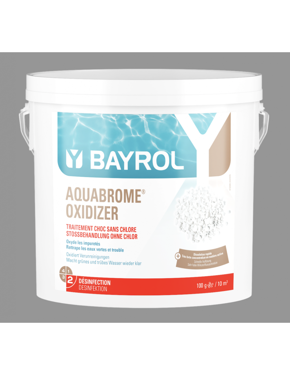 Aquabrome® Oxidizer est un traitement choc, sous forme de granulés, qui permet de rapidement répondre à un problème d'eau d'une piscine traitée au brome.